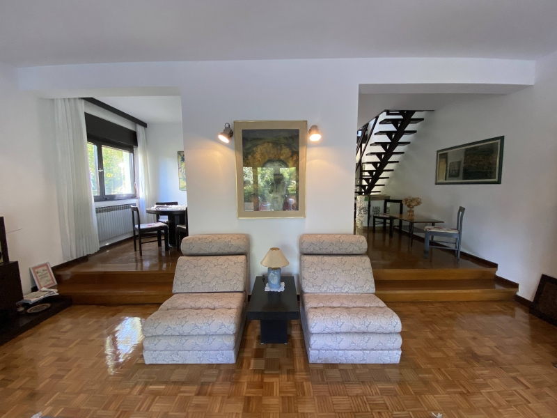 Beautiful family house of (249m2) with a spacious garden of (257m2), located in an excellent location in a quiet street in the center of Ivanic City. The house consists of ground floor, first floor and attic. On the ground floor there is an open living room with access to the garden, a kitchen and a toilet. On the first floor there are three rooms with a large bathroom and an attic that can be used as a children’s room or a quiet study. Parking is available in the field and in a closed garage in the yard.