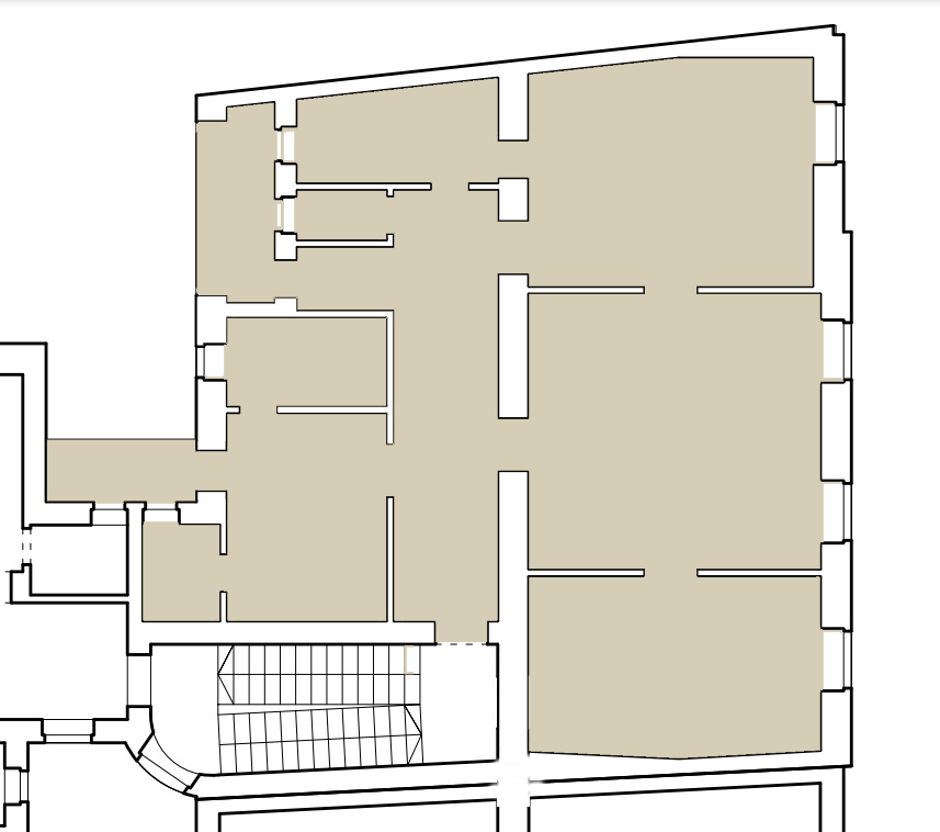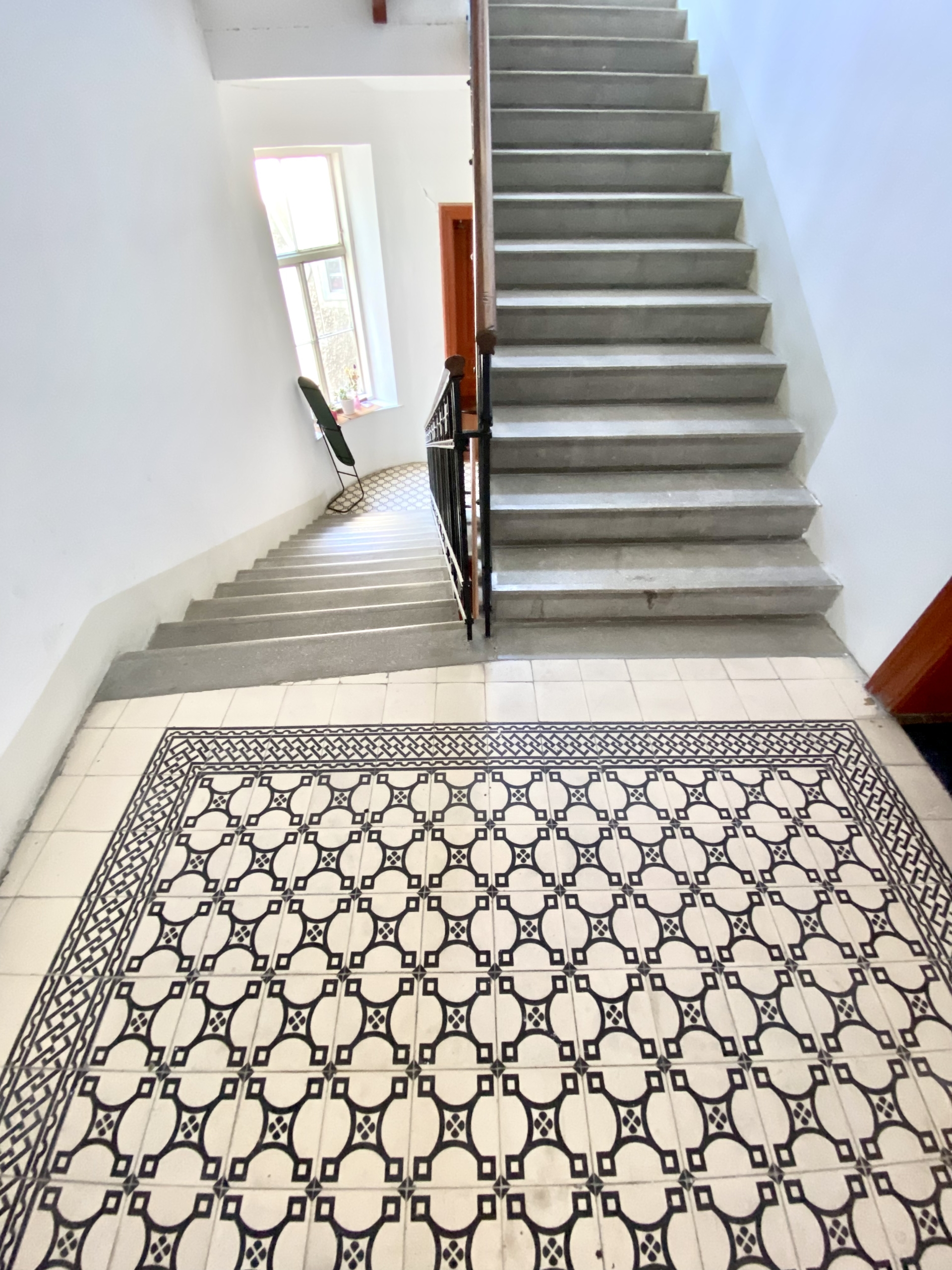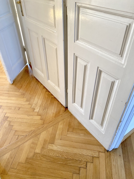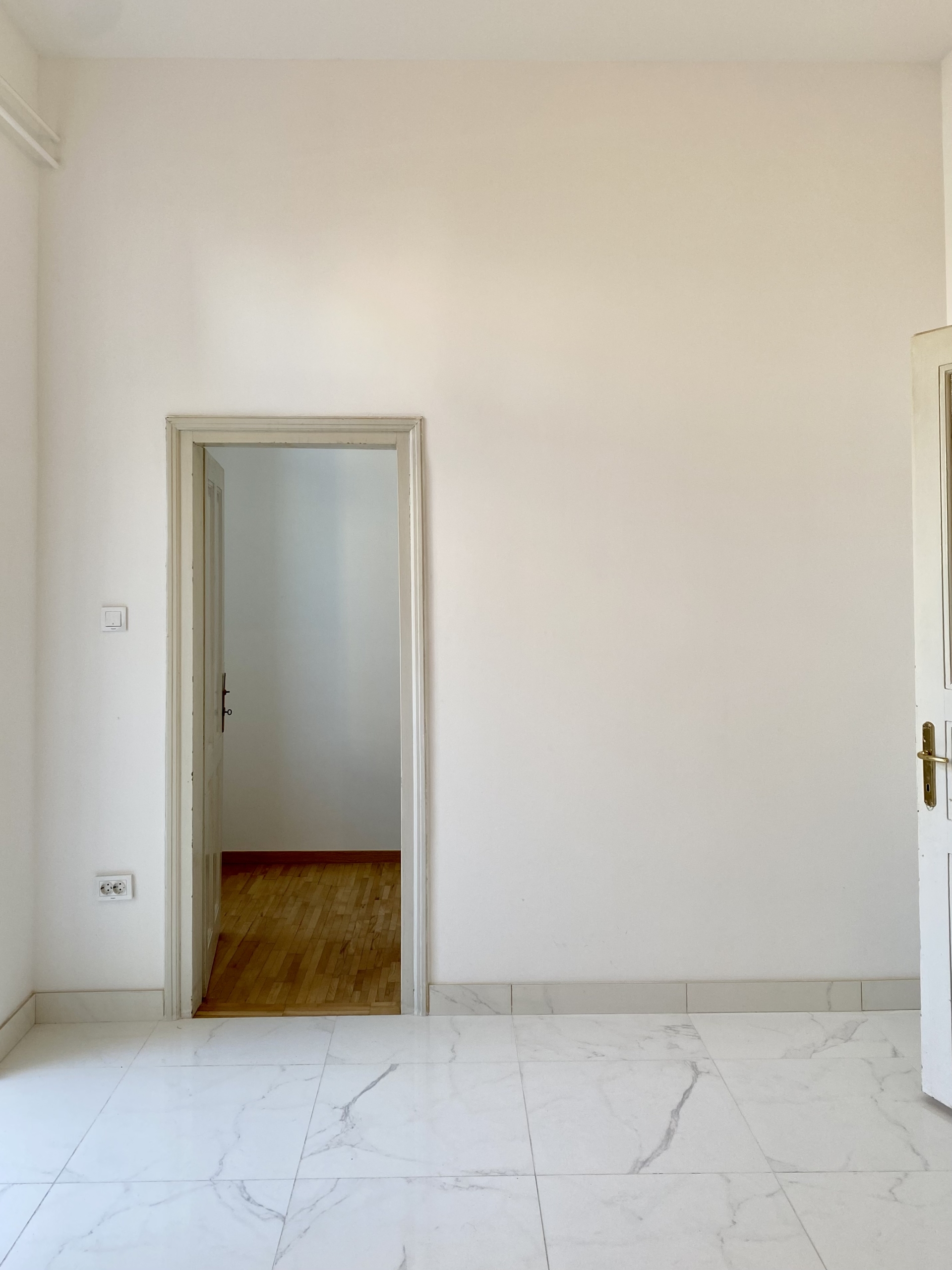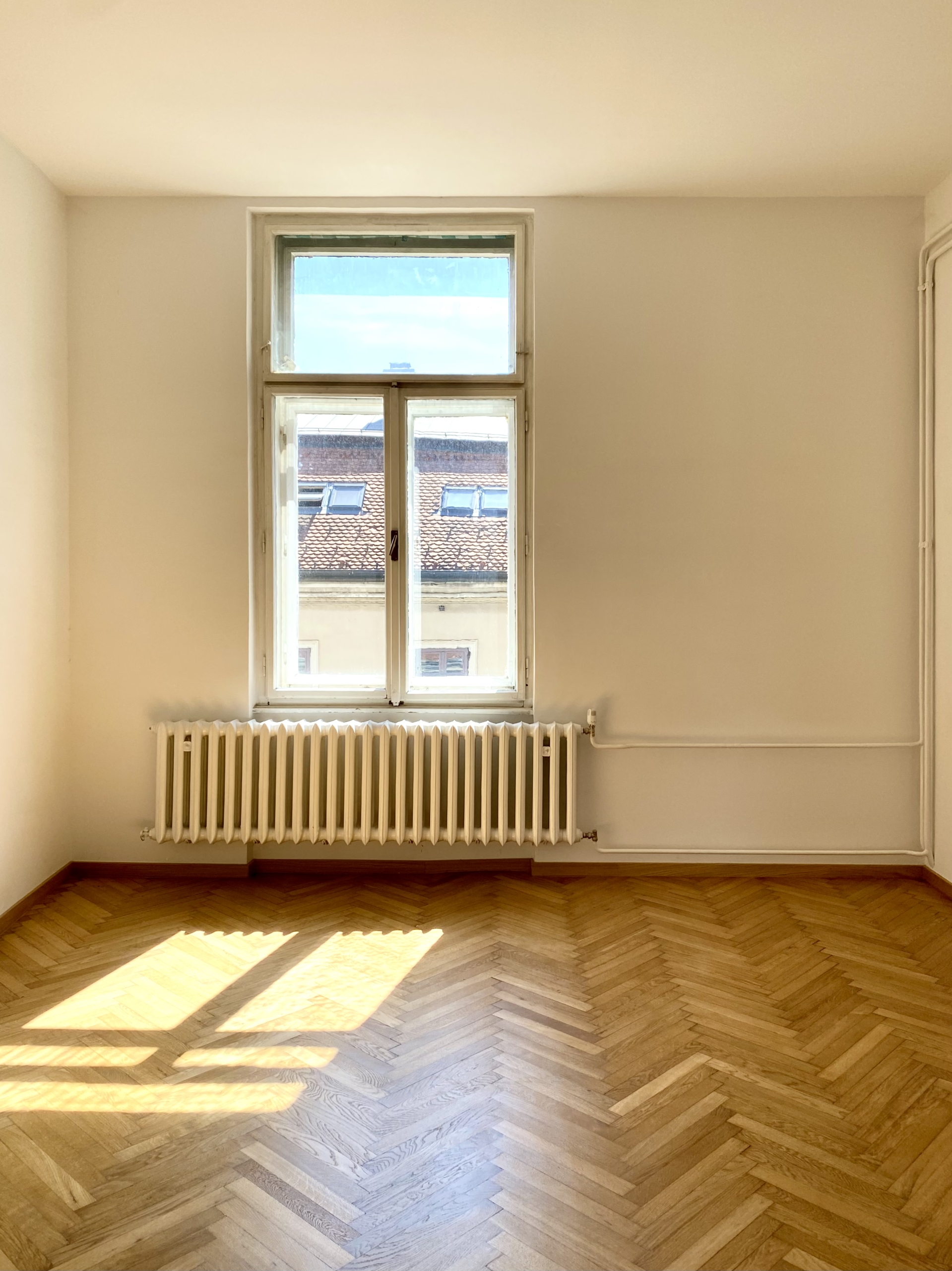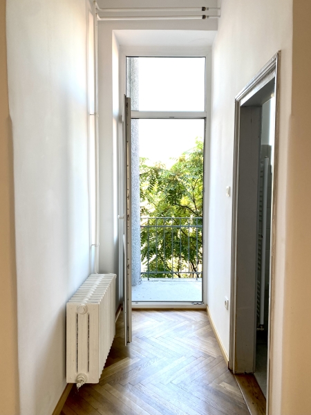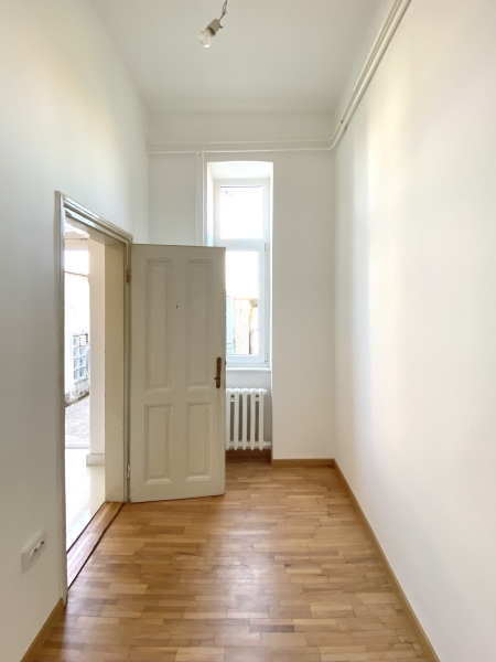 The apartment consists of a hallway, bathroom, toilet, three spacious rooms and one smaller room, a kitchen with storage and two balconies (on the courtyard side).