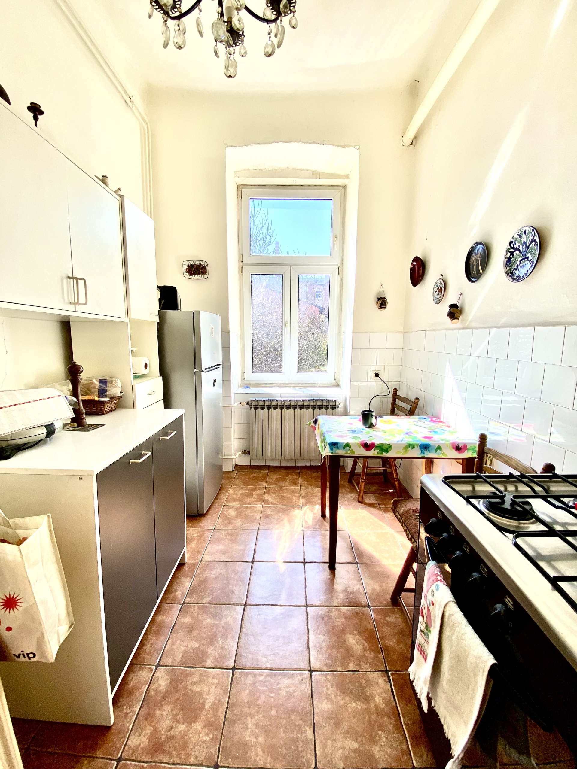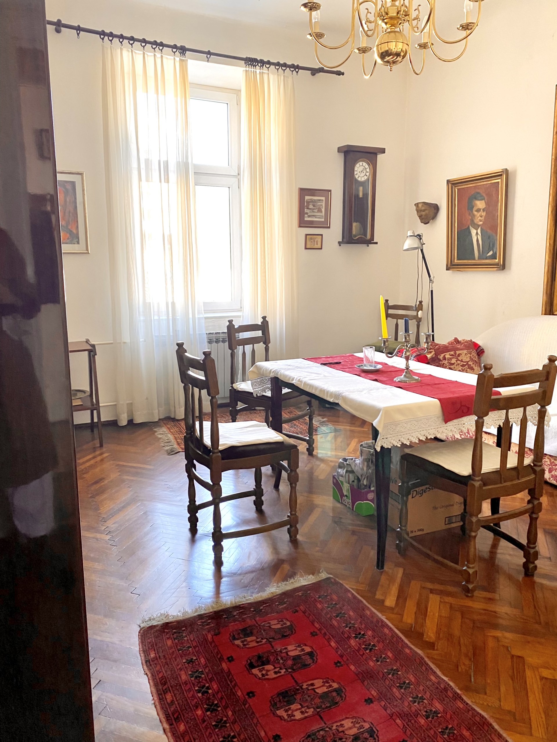 Prodaje se trosobni stan u centru Zagreba. Stan se sastoji od hodnika, spavaće sobe, dnevnog boravka, kupaone, izbe, odvojenog wc-a i kuhinje s blagovanjem. Stan ima novu vanjsku PVC stolariju, kompletno promjenjene instalacije. Uz stan se prodaje i pripadajuće spremište u podrumu.