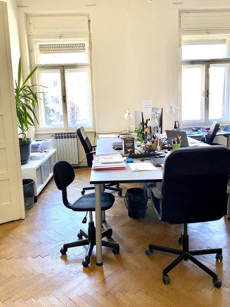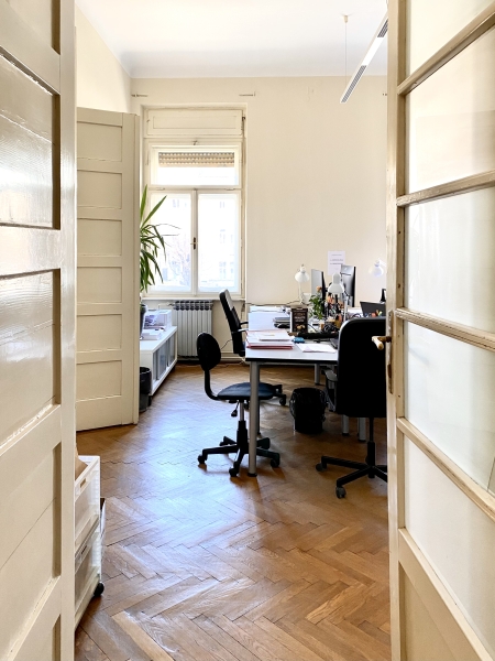 Prodaje se četverosobni stan u strogom centru Zagreba od 129 m2 na 1.katu u predivnoj održavanoj zgradi s liftom. Prostor se trenutno koristi kao uredski prostor. Orijentacija stana je zapad-istok. Poslovni prostor se trenutno sastoji od 3 veće uredske prostorije, kupaonice, kuhinje, jedne manje uredske dvoetažne sobe, wc-a i ostave na dvorišnoj strani, te tri balkona. Stan ima dva ulaza. Visina stropa 3.65 m. Stan ima etažno-plinsko grijanje. Stan ima parking u dvorištu. U blizini stana nalazi se tramvajska stanica, glavni gradski trg (svega 5 min pješice), poznati Dom likovnih umjetnika, Trg Burze, bolnica (Trauma), mnoštvo kafića i restorana, škola, i ostalo.