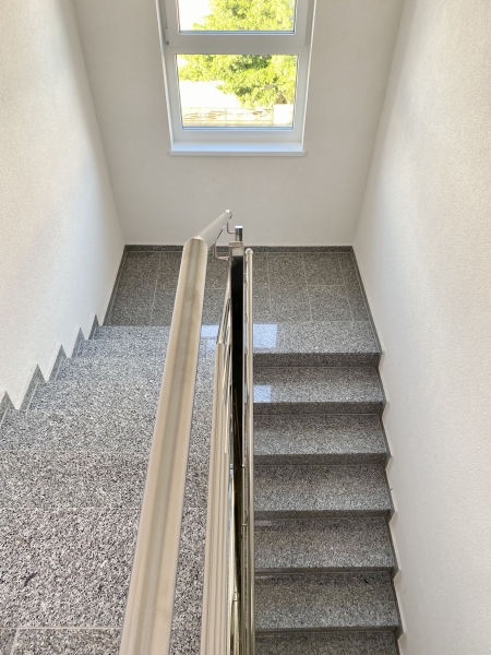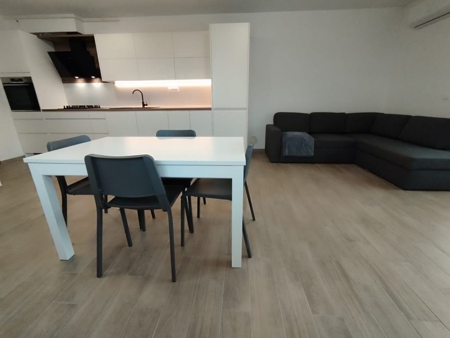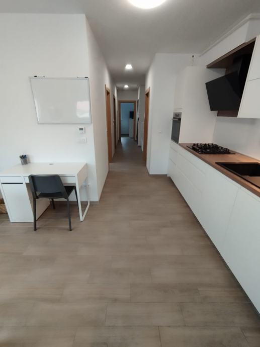 Stan se sastoji od hodnika, dnevnog boravka s kuhinjom, dvije spavaće sobe, kupaone, izbe i predivne vanjske terase. Zgrada ima lift. Uz stan se prodaje i pripadajuće spremište te garažno mjesto.