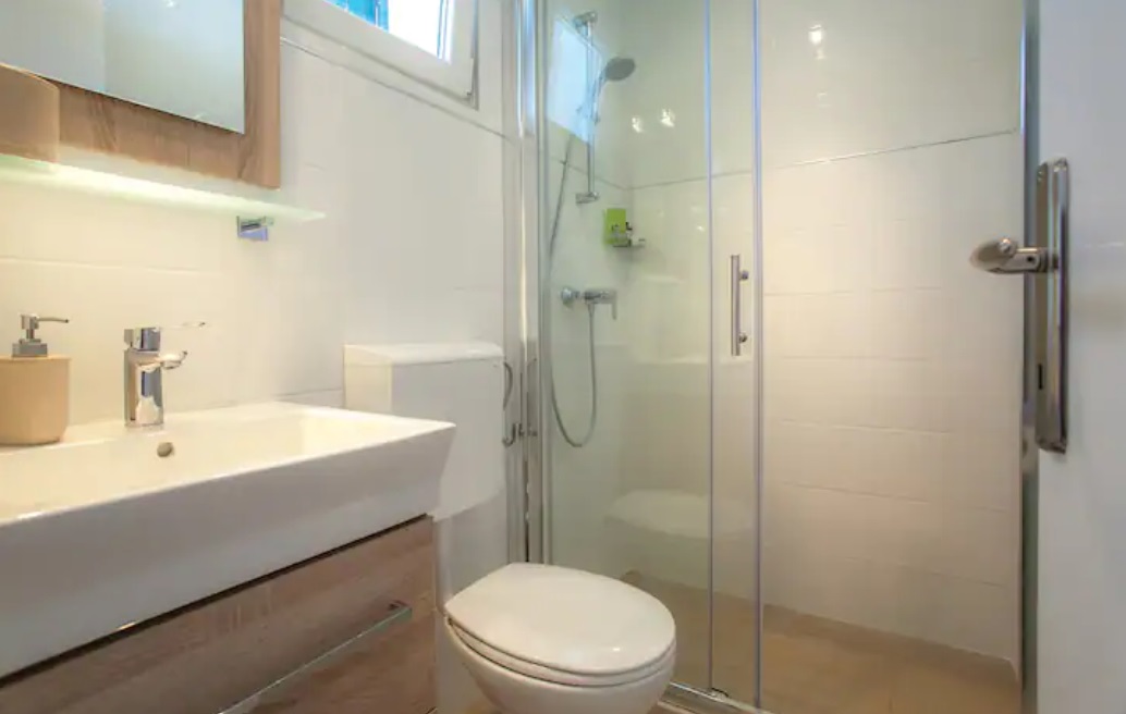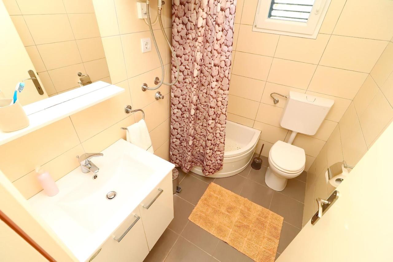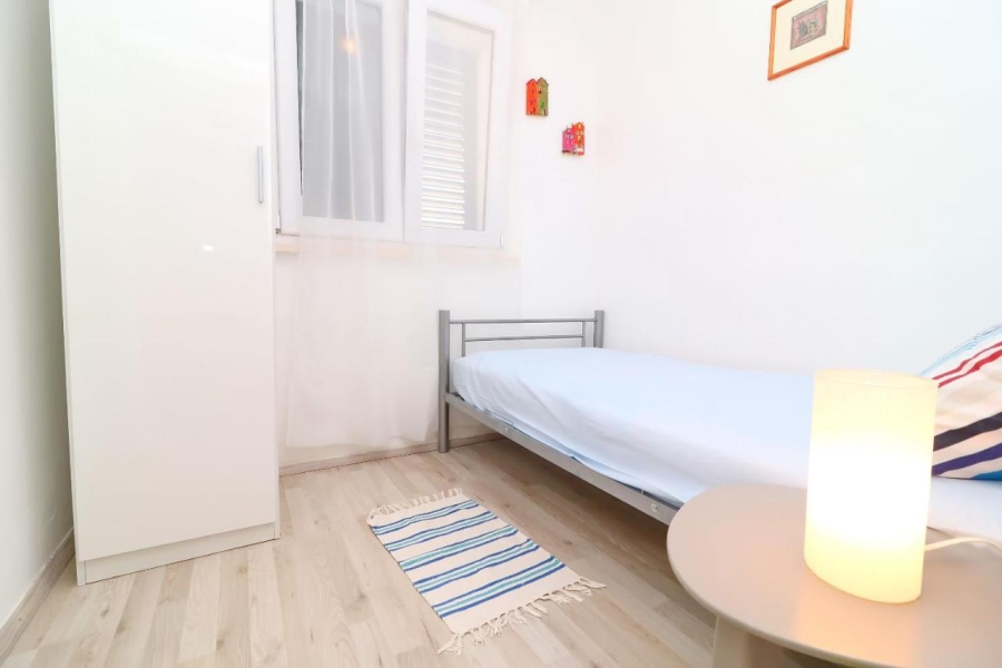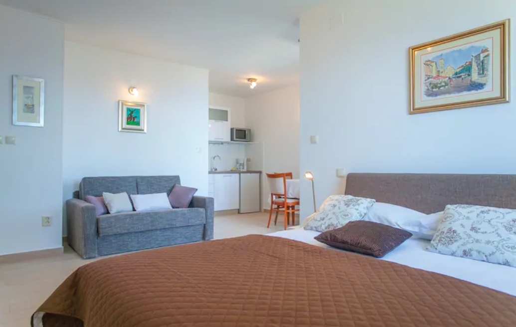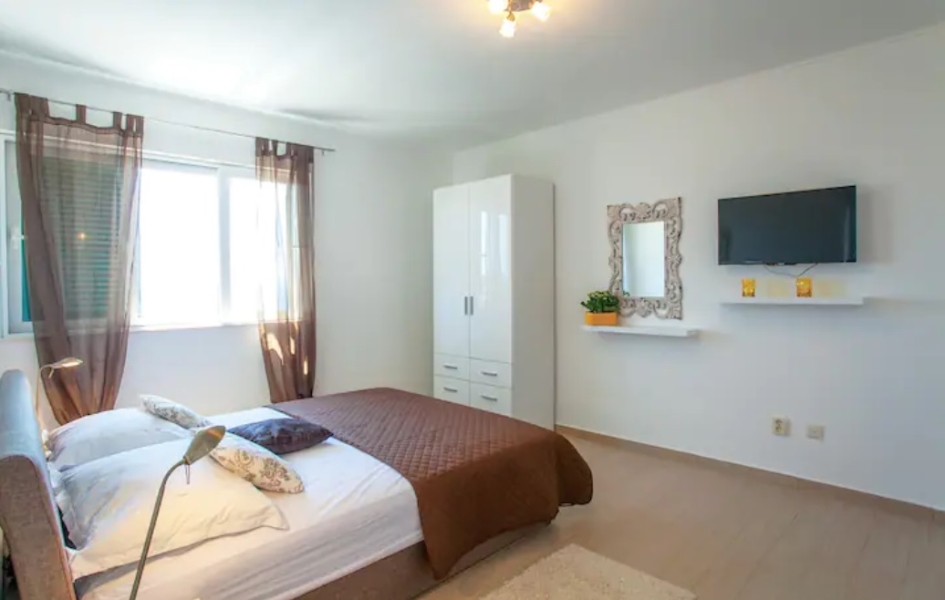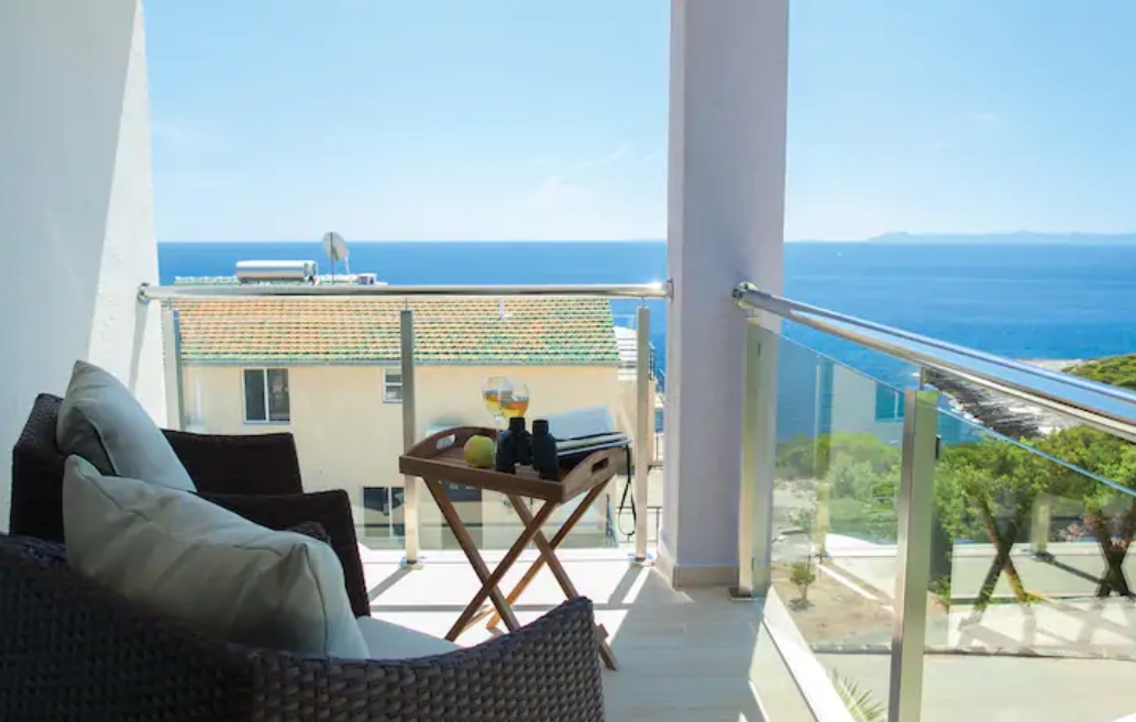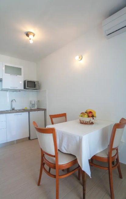Svaka ima svoju terasu s panoramskim pogledom na more. Jedna natkrivena terasa ima prekrasni pogled na more, a druga terasa nalazi se uz bazen s roštiljem. Na parceli se nalaze i razne kulture maslina, mediteranskog bilja s lavandom, Rosemarie, immortelles..